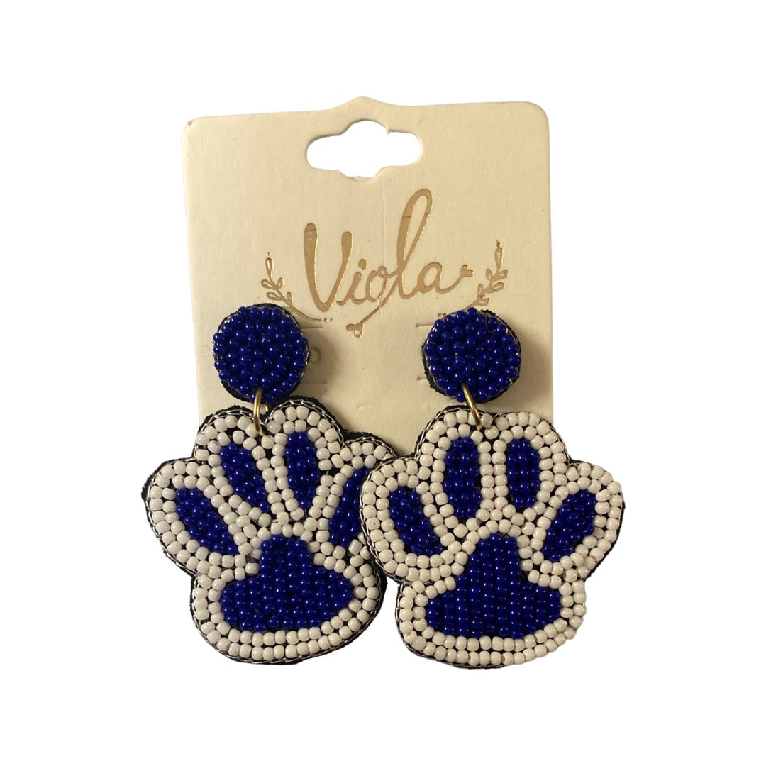 Blue and White Beaded Paw Earrings