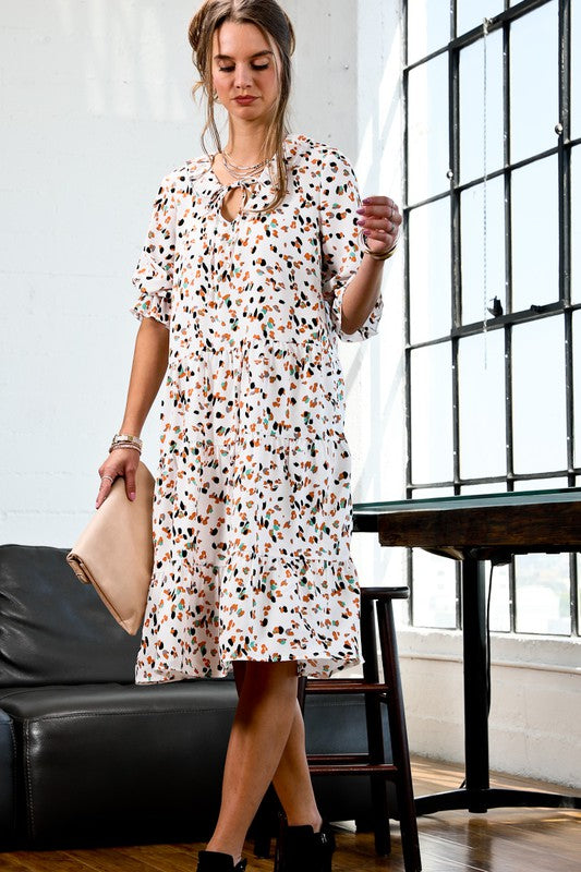 Leopard Printed Half-Sleeve Tiered Midi Dress